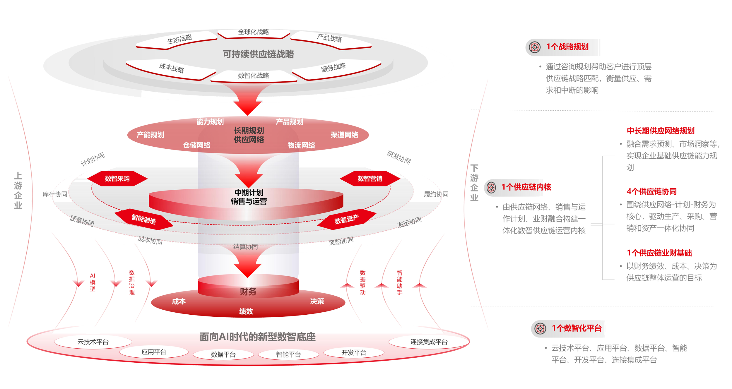 构建新一代供应链数字化业务支撑体系,打造1个供应链数字化基础设施共性支撑能力。夯实了整个供应链数据标准化工作,打造了研销产供协同能力,提升了供应链运营效率,降低了供应链运营成本。提高了总部决策效能,以数据赋能,进而提高供应链运营管理效能。