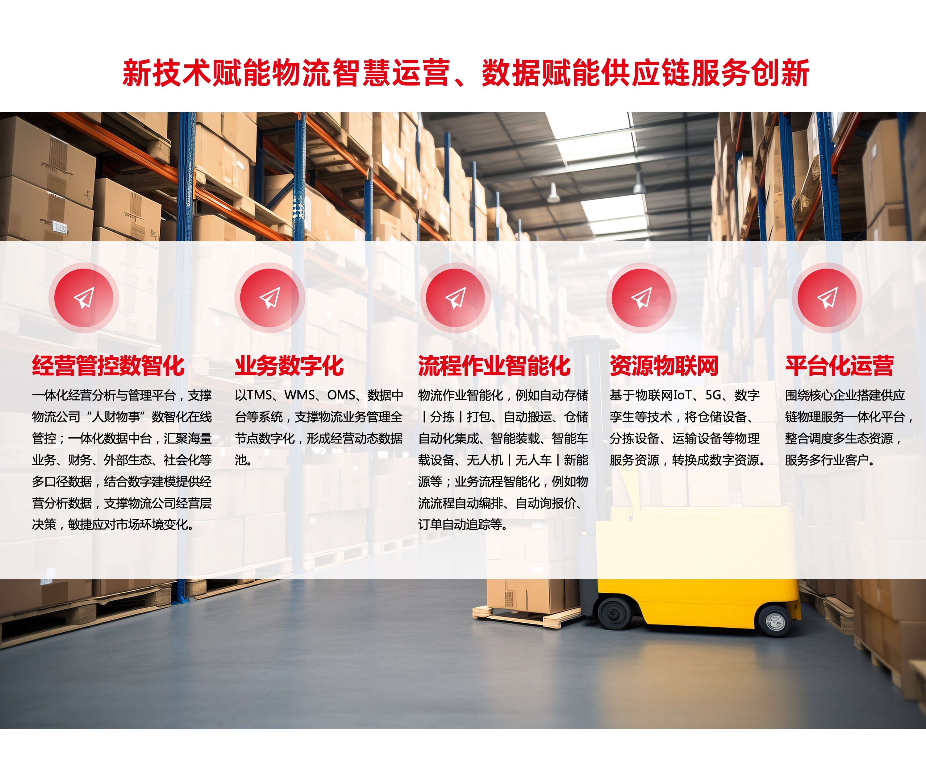 根据物流行业的发展趋势及数字化转型目标,利用先进的云计算、物联网等能力,构建物流行业财务、企业绩效、人力等全过程化管理,并集成前端业财融合一体化解决方案,助力推进现代物流提质、增效、降本。