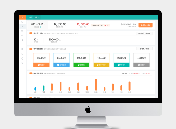 1今天销售 2登记客户付款 3各结算方式对账 4欠款日历