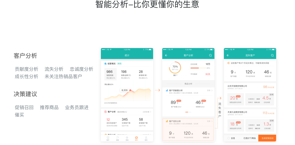 使用好生意后,通过对客户行为数据的分析以及客户被替换预警,可以很清楚的知道是哪些客户 、哪些商品的订单种类减少了,及时的调整营销策略,给予老客户一定的优惠,留住老客户。
